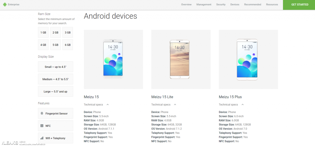 Meizu 15, 15 Lite і 15 Plus перераховані на офіційному сайті Android