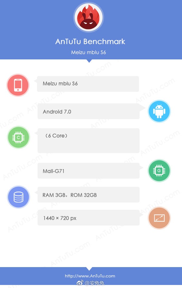 Meizu підтвердив, що Meizu M6S aka mblu S6 буде представлено 17 січня. Він з'явився на AnTuTu всього за пару тижнів до запуску. Передбачається, що він буде проводитися у підрозділі mBlu.